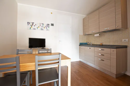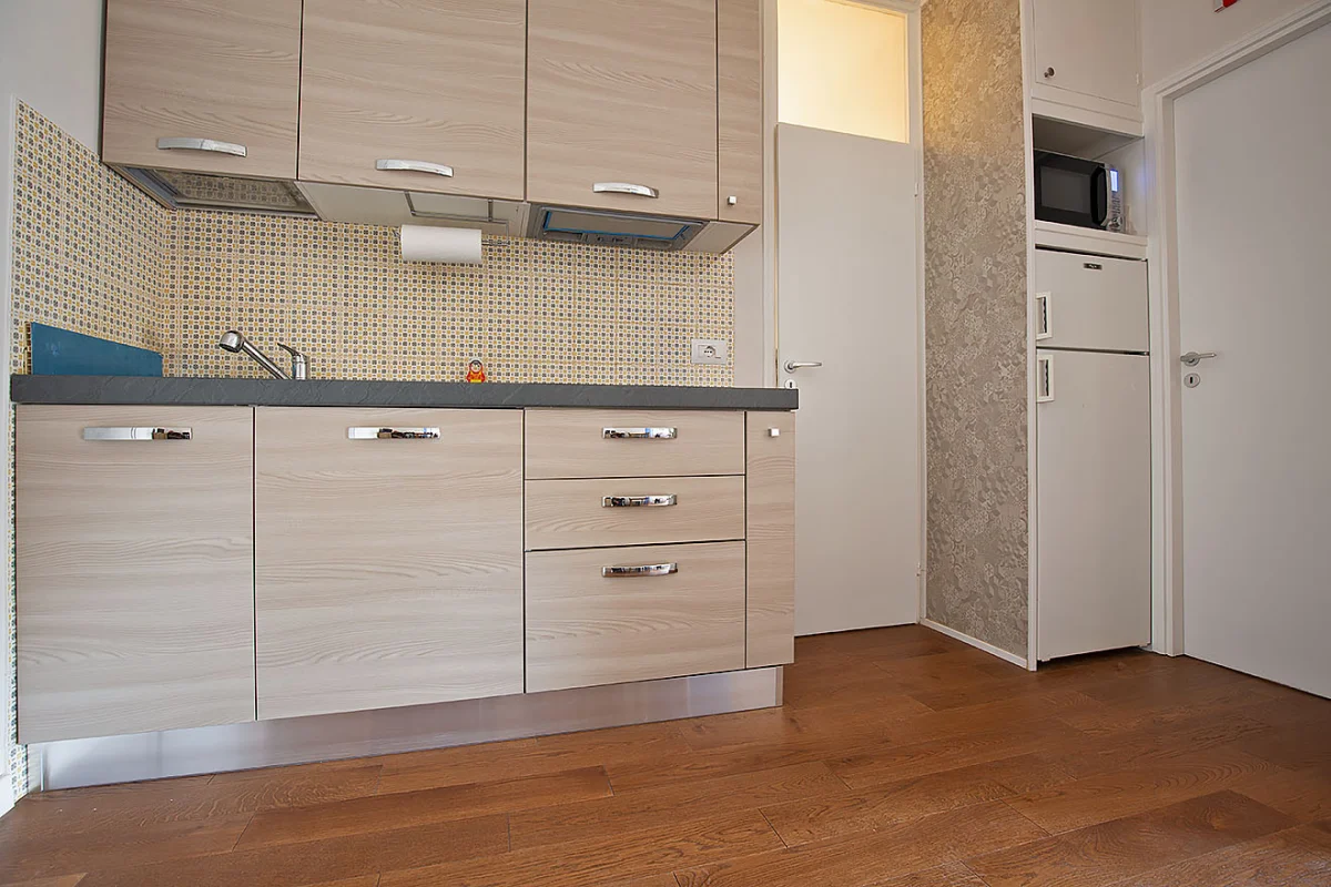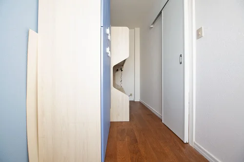 Entdecken Sie diese gemütliche Wohnung von etwa 40 Quadratmetern, ideal für eine Familie oder eine Gruppe von vier Personen. Die Wohnung befindet sich im zweiten Hochparterre einer ruhigen Wohnanlage ohne Aufzug und bietet ein Wohnzimmer mit Kochnische, ein Schlafzimmer mit Doppelbett und ein kleines Schlafzimmer mit Etagenbett. Das Bad ist mit einer modernen Duschkabine und wandhängenden Sanitärobjekten ausgestattet.