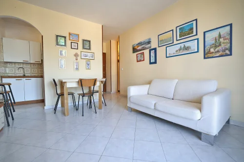 Nous proposons un appartement au premier étage d'une élégante résidence à environ 100 mètres de la mer. Il comprend un séjour avec coin cuisine et canapé-lit, une chambre double et une salle de bains avec douche. Le séjour s'ouvre sur un beau balcon récemment rénové. Une grande cave se trouve au sous-sol. Une place de parking privative est incluse. L'appartement est vendu meublé. Quartier calme, à proximité de la mer, des commerces et des lieux de vie nocturne.